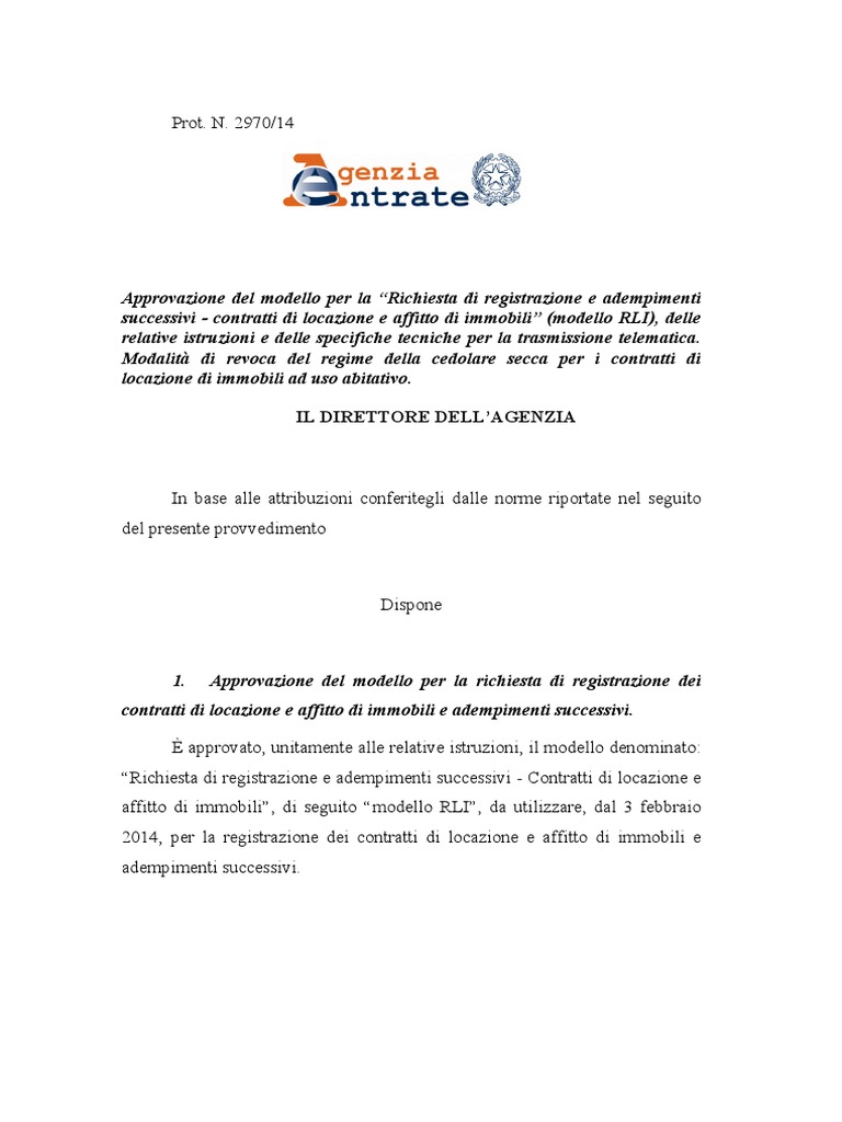 Dalle Entrate Nuovo Modello Rli Per La Registrazione Dei